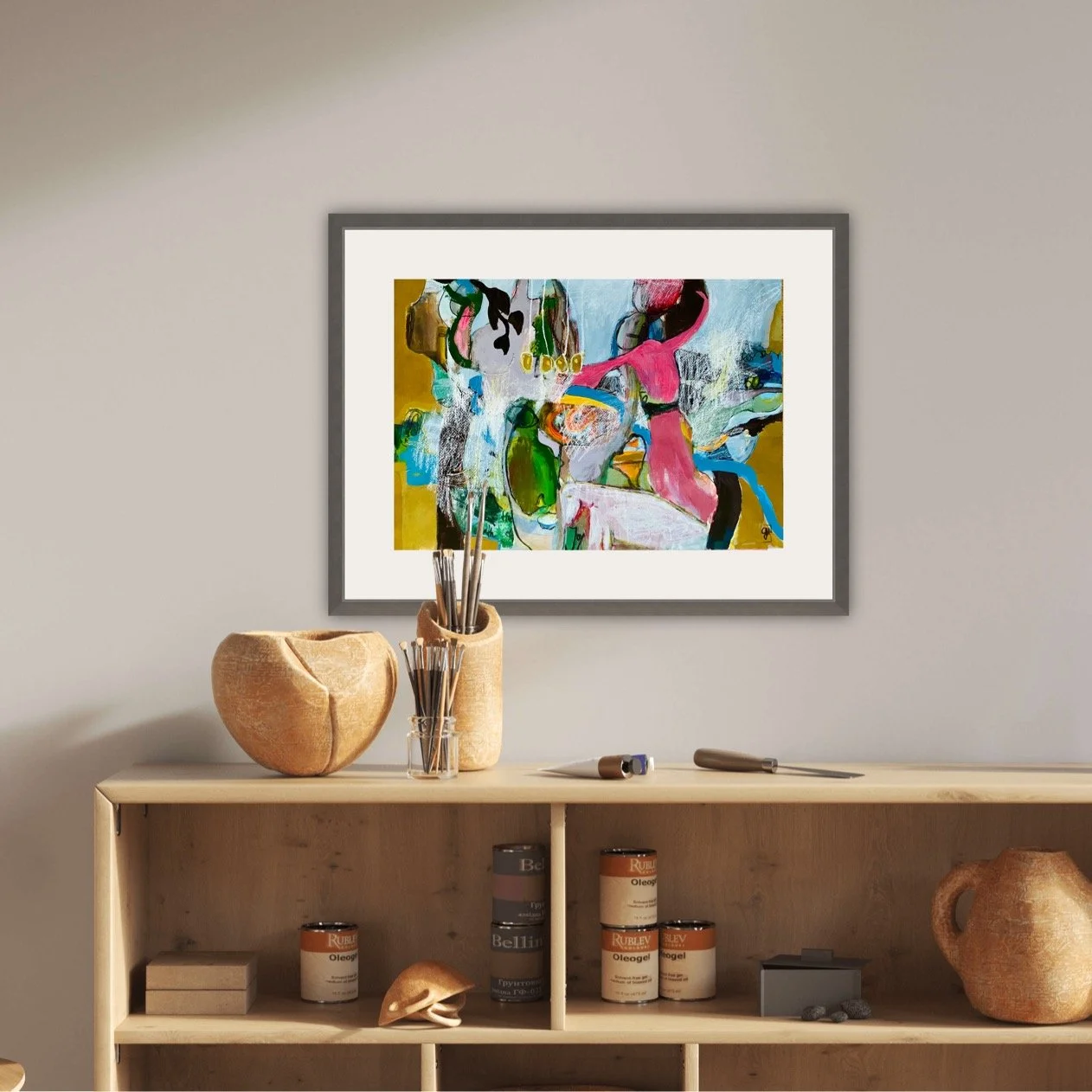Hirt's passion for visual art was sparked during a year sailing the Mediterranean with her partner and their two children in 2013/14. At the heart of her dynamic experimental practice are abstract paintings that integrate human figures, expanded through associated sculptures, performance, and video—often realised in interdisciplinary collaborations.