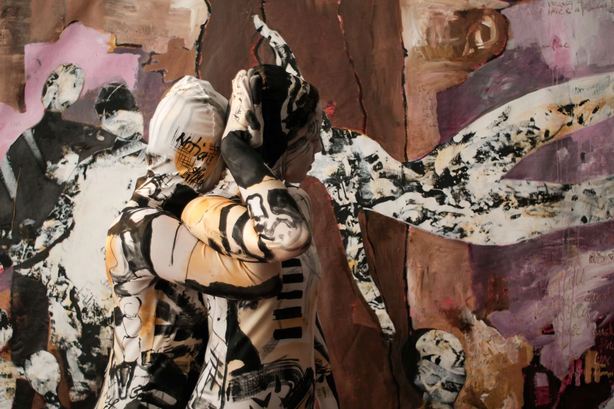 Storied Bodies is an experimental short film that brings together cinematography, dance, sound, and expanded painting. Two dancers, Tabea Antonacci and Marie Elise Hufnagel, translate complex emotions and histories from a large piece of wall art into movement, suggesting that if trauma is embodied and passed along in the body, why wouldn’t resistance and resilience be as well?