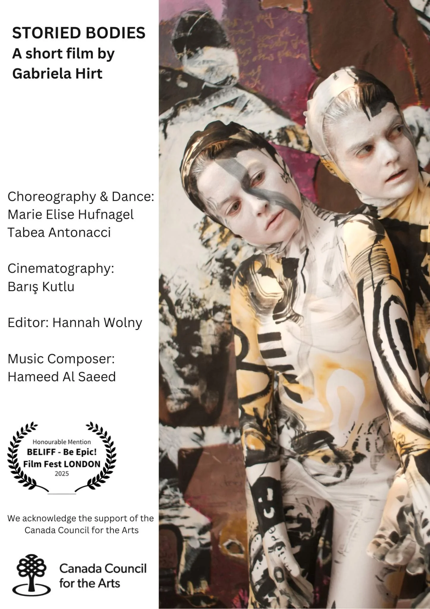 Storied Bodies is an experimental short film that brings visual art to life through dance, exploring intergenerational trauma and colonial legacies as barriers to connection. Two painted figures awaken from an abstract painting, embarking on an emotional, sometimes disorienting journey through isolation, chaos, and conflict. As they confront the personal and collective histories embedded in their bodies, their interaction reveals both the forces that separate and connect them. The film offers a poetic meditation on identity, trauma, memory, and human relation.